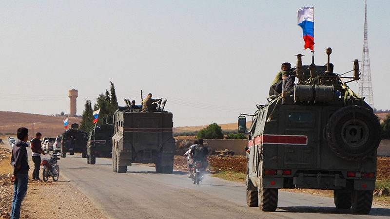 Pasukan Rusia melakukan patroli di Suriah Utara.