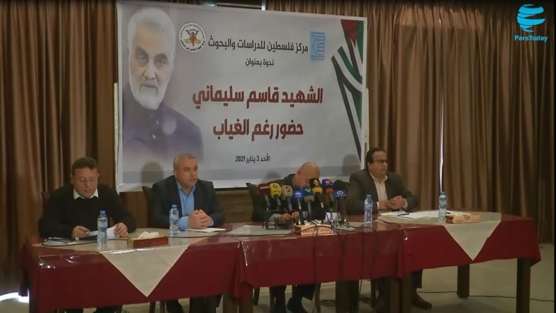 Rakyat Palestina menganggap Syahid Soleimani sebagai pahlawan untuk Palestina dan al-Quds. Mereka berterima kasih kepada Letjen Soleimani atas dukungannya dalam perjuangan melawan pendudukan Israel.