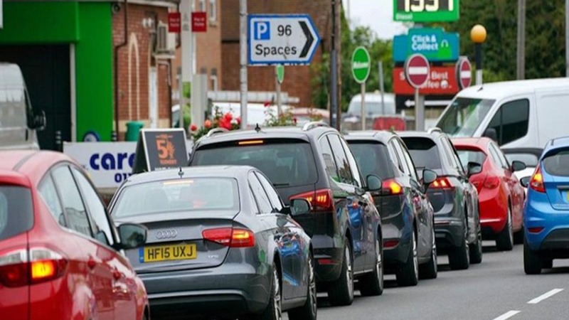 Penutupan pom bensin milik perusahaan minyak BP, dan Shell, menyebabkan antrian-antrian panjang masyarakat Inggris yang ingin membeli bensin.