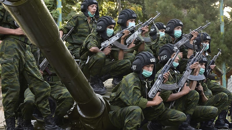 Pasukan Tajikistan di distrik Panj, dekat perbatasan Afganistan.
