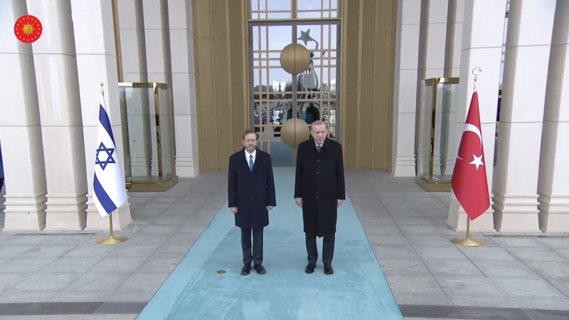 Sejalan hal tersebut, Erdogan mengudang Presiden rezim Zionis, Isaac Herzog untuk berkunjung ke Turki. Mereka bertemu di Ankara pada 9 Maret 2022. Pertemuan Erdogan dan Herzog dan peningkatan kerja sama antara Turki dan Israel terjadi ketika Erdogan dan para pejabat Ankara lainnya telah berulang kali menegaskan dukungan mereka kepada perjuangan rakyat Palestina.