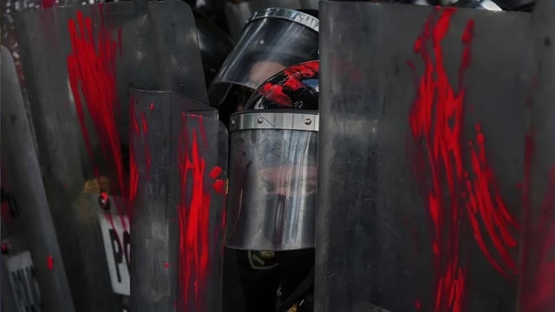 Guardian: Polisi di Mexico City melihat keluar dari balik perisai ke demonstran antiperang Gaza.