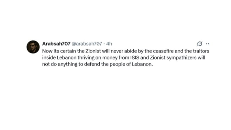 “Sudah jelas bahwa Zionis tidak akan pernah mematuhi gencatan senjata, dan para pengkhianat di dalam Lebanon yang hidup dari uang Daesh dan pendukung Zionis tidak akan melakukan apa pun untuk melindungi rakyat Lebanon.”