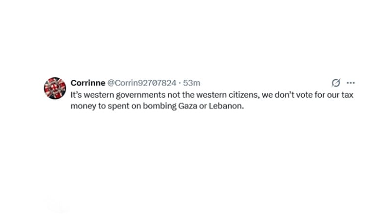 “Yang mendukung Israel itu pemerintah Barat, bukan warganya. Kami tidak ingin uang pajak kami digunakan untuk membom Gaza atau Lebanon.”