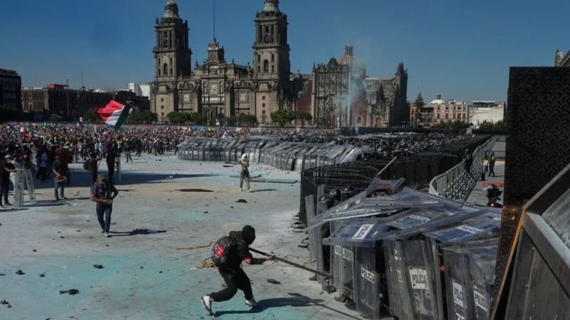 Berita lainnya: Ribuan warga Meksiko pada hari Minggu (16/11/2025) turun ke jalan-jalan ibu kota (Mexico City) untuk memprotes korupsi, kejahatan, dan ketidakpatuhan terhadap hukum, serta meneriakkan slogan menentang kekerasan terkait narkotika dan kebijakan keamanan Claudia Sheinbaum, Presiden Meksiko. Aksi tersebut pada awalnya berlangsung damai, namun pada akhirnya sebagian demonstran bentrok dengan polisi, dan petugas menjadi sasaran lemparan batu, bahan pembakar, kayu, dan rantai. Pablo Vázquez, Kepala Kepolisian Mexico City, mengumumkan penangkapan 20 demonstran dan mengatakan bahwa 120 orang—terdiri dari 100 polisi dan 20 demonstran—mengalami luka-luka.