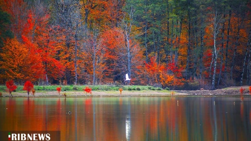 Musim gugur di Mazandaran, Iran utara dengan dedaunan berwarna-warni di pepohonan dan cuaca sejuk dan menyenangkan.