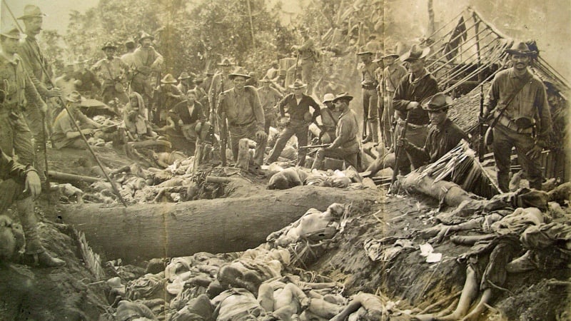 Ketika tembakan meriam dan senapan mesin berakhir dan tentara Amerika berdiri di samping tumpukan mayat untuk foto peringatan, kamera merekam bukan kemuliaan kemenangan tetapi rasa malu atas kejahatan yang keji. Gambar ini memecah keheningan yang berat di kawah gunung berapi dan membawa ke telinga dunia jeritan pembantaian yang bahkan mendorong penulis Amerika terkenal Mark Twain untuk menuduh pemerintah negaranya melakukan pembantaian brutal.