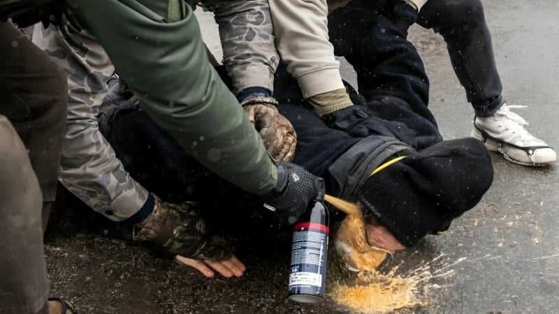 Krisis di Minnesota, Penyemprotan Wajah Demonstran dengan Bahan kimia