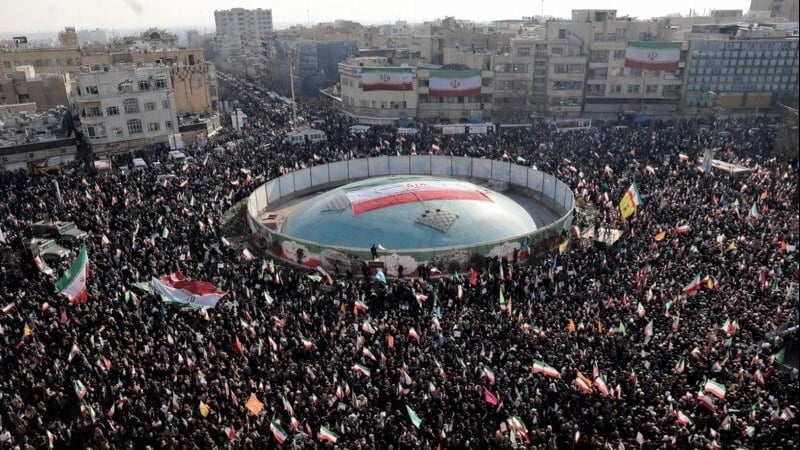Pawai rakyat Teheran dalam dukungan terhadap persatuan nasional dan kecaman terhadap aksi teror Amerika dan rezim Zionis terhadap bangsa Iran, 12 Januari.