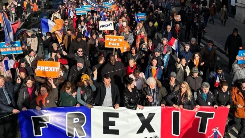 Sementara itu, warga Prancis mengadakan demonstrasi di Paris menuntut negara mereka keluar dari Uni Eropa. Florian Philippot, pemimpin Partai Patriot Prancis, dalam demonstrasi tersebut menyatakan, "Saya berpikir selama kita masih berada di Uni Eropa dan NATO, kita tidak memiliki diplomasi yang sesungguhnya. Jadi semuanya hanya omong kosong belaka. Saya pikir kita benar-benar perlu berdialog dengan Rusia."