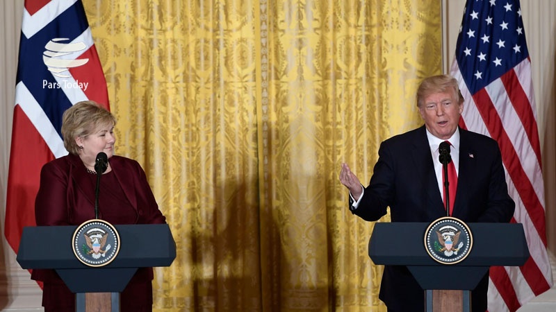 Perdana Menteri Norwegia Erna Solberg dan Presiden AS Donald Trump.