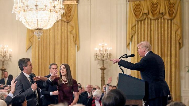 Cekcok antara Presiden AS Donald Trump dan reporter CNN Jim Acosta di Gedung Putih.