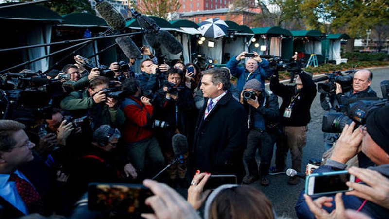 Acosta, koresponden Gedung Putih CNN, kembali pada sore hari. Gedung Putih mengatakan akan mengembangkan aturan baru untuk konferensi pers yang lebih teratur. Gedung Putih mencabut izin liputan Acosta pekan lalu setelah dia dan Trump berseteru selama konferensi pers pemilihan sela.