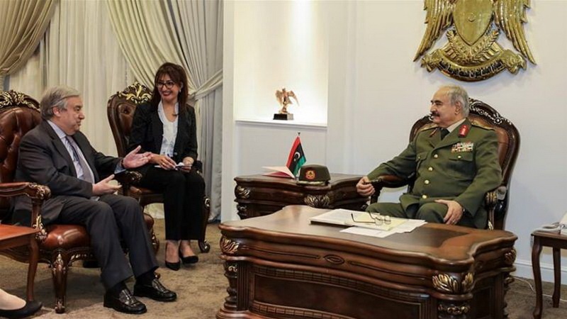 Guterres Kamis lalu berkunjung ke Libya dan bertemu dengan Faiz al-Siraj, ketua pemerintahan nasional bersatu dan Khalifa Haftar, Komandan Pasukan Nasional Libya.