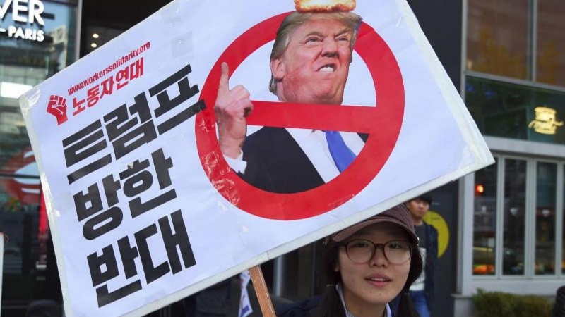Unjuk Rasa Warga Korsel Protes Trump