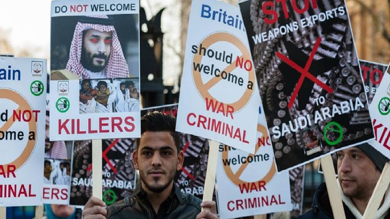 Aksi penolakan terhadap rencana kunjungan Mohammed bin Salman ke Inggris. (dok)