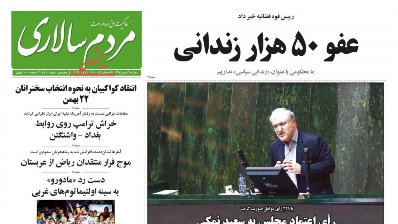- La Guida suprema, l'ayatollah Ali Khamenei, ha accettato le condizioni di base per offrire l'amnistia a circa 50 mila detenuti in occasione del 40/mo anniversario della rivoluzione che ha portato alla nascita della Rivoluzione islamica. Lo ha detto il capo della magistratura, l'ayatollah Sadeq Amoli Larijani, citato dall'agenzia ufficiale Irna.