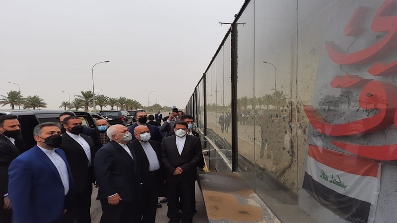 si e' recato insieme alla delegazione che lo accompagna, a visita la localita' "Maghtal ol Shuhada", il luogo dei martiri della resistenza. Il luogo del martirio del generale Qassem Soleimani, il capo delle Forze iraniane al-Quds, di Abu Mahdi al-Mohandes, il vice capo della mobilitazione irachena Hashd al Shaabi, ed altri quattro loro compagni di guerra. Erano impegnati nella battaglia al terrorismo americano, l'ISIS ossia Daesh, il mostro creato dagli Usa, quando sono rimasti uccisi nel gennaio 2020 in un attacco terroristico ordinato da allora presidente Donald Trump.