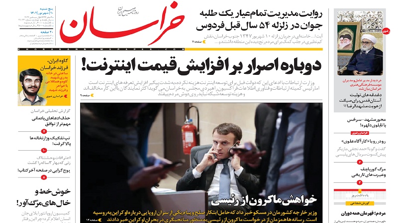 TEHRAN - Il giornale Khorasan oggi in edicola ha scelto l'incontro tra i ministri degli Esteri di Iran e Russia come il titolo principale sulla sua prima pagina.