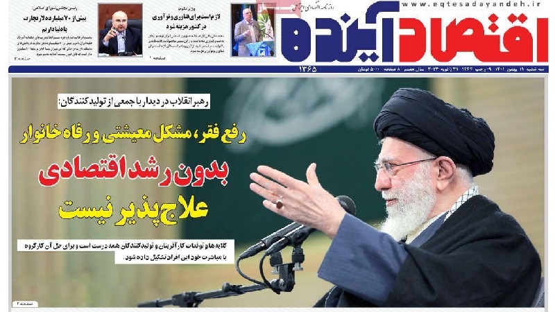 TEHRAN - Le affermazioni del sommo ayatollah Khamenei, nell'incontro con un gruppo di imprenditori, produttori e responsabili delle società high-tech del Paese, sulla prima pagina dei giornali nazionali, oggi in edicola, come EqtesadAyandeh. .