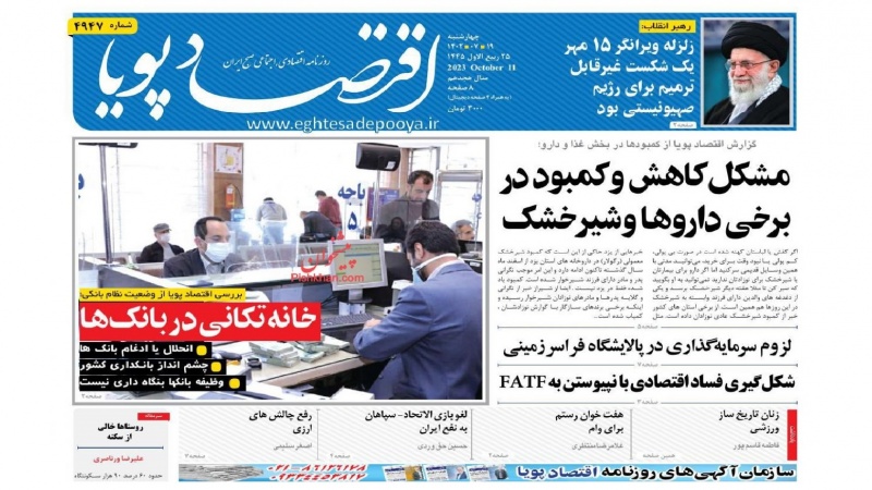TEHRAN - Il quotidiano nazionale "Eghtesad-e Pooya", oggi mercoledi' 11 ottobre 2023 in edicola, ha scelto questa frase delle affermazioni di ieri della Guida suprema dell'Iran, ...