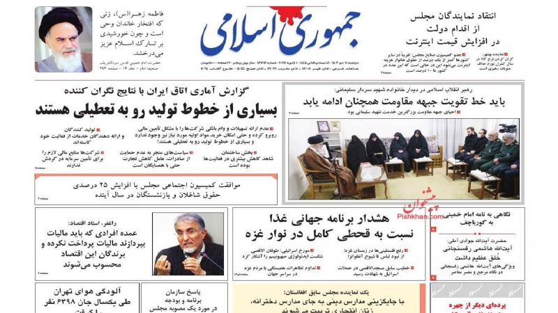 TEHRAN - Il giornale nazionale "Jomhouri Eslami", edito a Tehran ha riportato le affermazioni della Guida dell'Iran, l'Ayatollah sayyed Ali Khamenei, ...