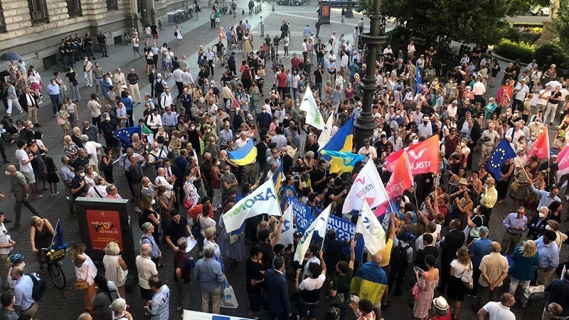 e per chiedere che il governo vada avanti fino alla scadenza naturale della legislatura, a marzo 2023. Centinaia di cittadini si sono riuniti in piazza della Scala per testimoniare il loro appoggio al presidente del Consiglio.