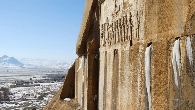 L’area di Bisotun con il significato di “luogo degli dei” è tra le opere nazionali dell’Iran e dall’anno 2006 è stata inserita nel patrimonio mondiale dell’Unesco. Sulle piccole rocce accanto alla strada e ai piedi della montagna si notano disegni a rilievo risalenti all’epoca degli Arsacidi che suscitano minore interesse e un nuovo atto di donazione è stato realizzato nel periodo dello Shah Soleiman safavide e al centro del disegno del periodo arsacide.