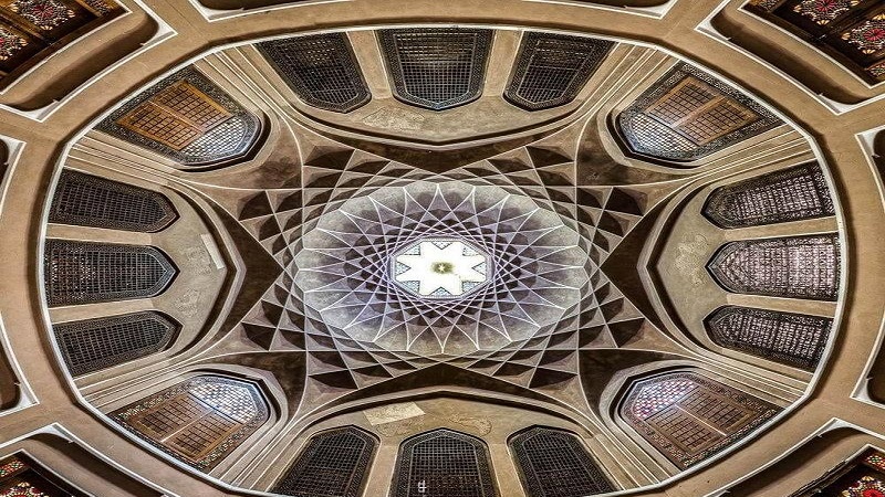 2- il biruni (l’esterno), il luogo dove si svolgevano le cerimonie governative, le celebrazioni sportive e sede dell’ufficio degli affari della città) che comprendeva: il jelokhān (spazio aperto situato prima del portico d’entrata) e il portale, la sala degli specchi, il palazzo Tehrāni, due piccoli bazar, il magazzino pubblico e il tribunale.