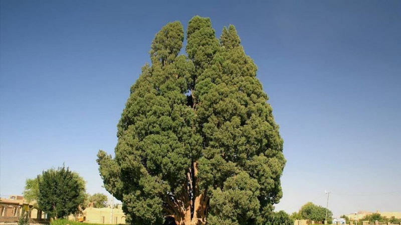 Questo albero è sorretto da un tronco con un perimetro di 11,5 metri, i suoi rami hanno un diametro di 1,85 metri, svetta per circa 35 metri e la sua circonferenza totale è pari a 18 metri. Nella regione di Yazd sono stati riconosciuti oltre 50 alberi secolari di diverse tipologie come i cipresso, il platano, il noce e il frassino che sono venerati dalla gente del posto.