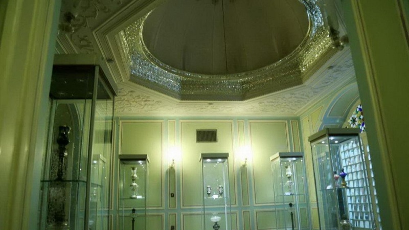 Le finestre sono reticolate con i vetri policromi e le porte in legno. In questo museo è esposta una collezione di manoscritti antichi, di libri, monete, di armi e alcuni oggetti in bronzo provenienti dal Lorestan.