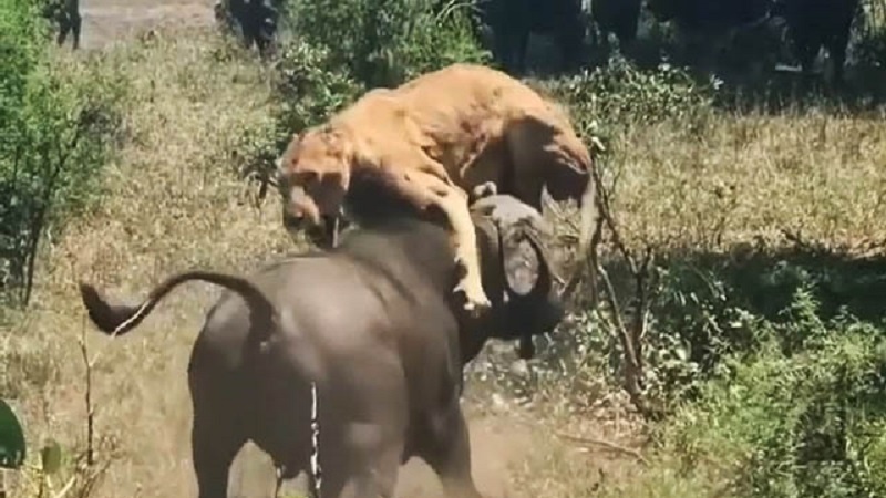 Una leonessa è stata attaccata da un buffalo nel Kruger National Park in Sudafrica