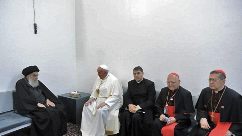 FOTO) Iraq, l'incontro tra l'ayatollah Sistani e Papa Francesco