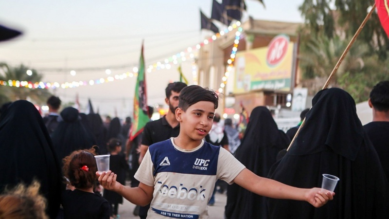 Vediamo i bambini e i giovani iracheni che offrono cibo e bevande ai pellegrini dalla mattina alla sera con entusiasmo ...