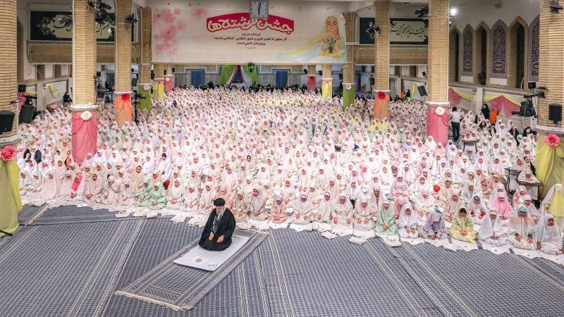 - Il sommo ayatollah Khamenei insime ad un gruppo di ragazze hanno celebrato l'anniversario della nascita dell'Imam Ali (as) presso l'Hosseiniyeh Imam Khomeini a Tehran.