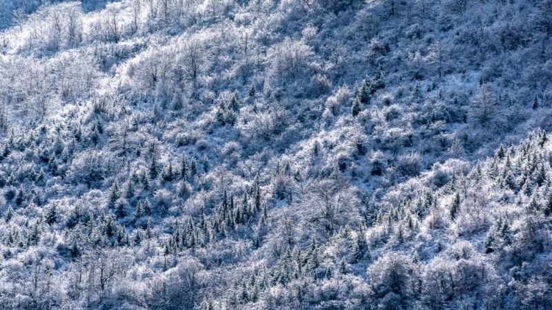 La neve sul bosco Olang, che si trova nella provincia di Golestan, nord dell'Iran.