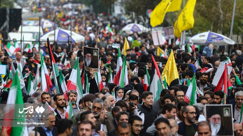 - Milioni di iraniani sopratutto i giovani sono scesi in piazza oggi nella capitale Tehran ed in altre citta' del Paese per le celebrazioni nazionali della lotta all'imperialismo mondiale (4/11/2023).