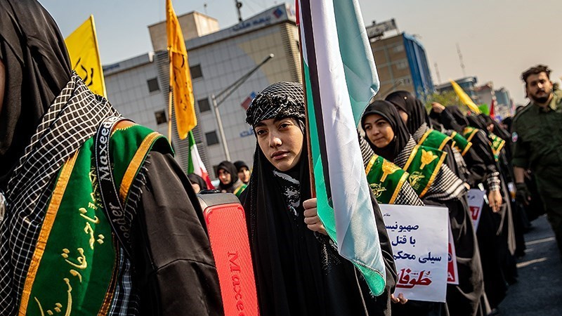 - A Tehran, la marcia 50mila membri Basij (mobilitazione volontaria della rivoluzione islamica dell'Iran) a sostegno della Palestina.