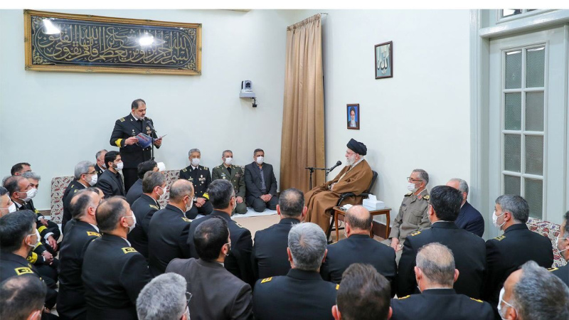 - L'Ayatollah Khamenei, in veste del comandante in capo delle forze armate dell'Iran, ha ricevuto i comandanti e responsabili della marina dell'esercito della Repubblica islamica, ieri in occasione della Giornata nazionale della Marina del Paese.