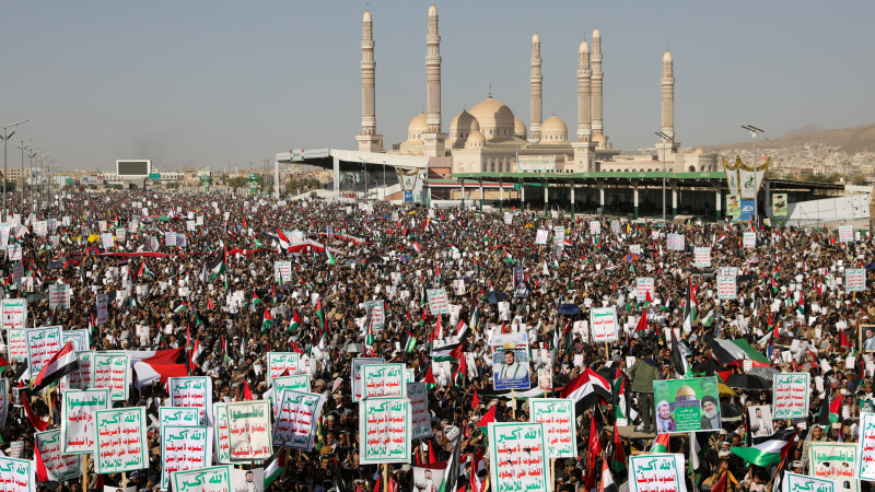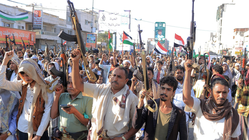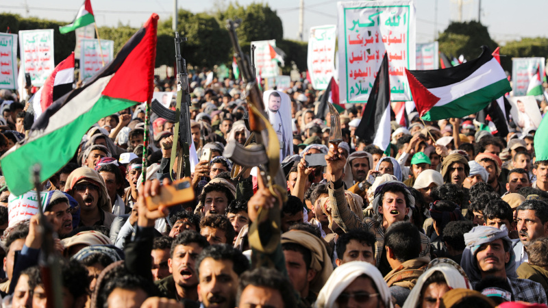 - A Sanna i manifestanti sono scesi in piazza nella capitale per condannare gli attacchi della coalizione anglo-americana contro loro Paese e per sosteonere le operazioni pro palestinesi del loro governo a guida del movimento politico di Ansarullah.