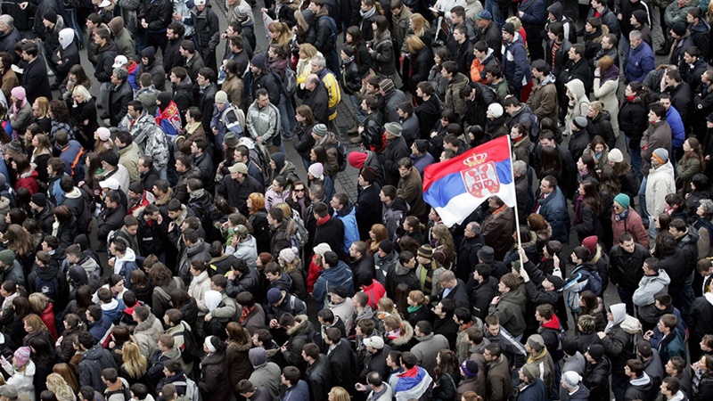 Dopo aver osservato un minuto di silenzio in memoria delle vittime dei bombardamenti Nato di 20 anni fa, ai dimostranti hanno parlato un attore, Branislav Lecic, e un generale in pensione, Sreto Malinovic, che hanno ribadito le richieste di dimissioni dell'intera dirigenza serba - presidente, governo, parlamento e vertici della tv pubblica. Se ciò non avverrà entro il 13 aprile, in quel giorno a Belgrado - hanno assicurato - manifesterà "l'intera Serbia".