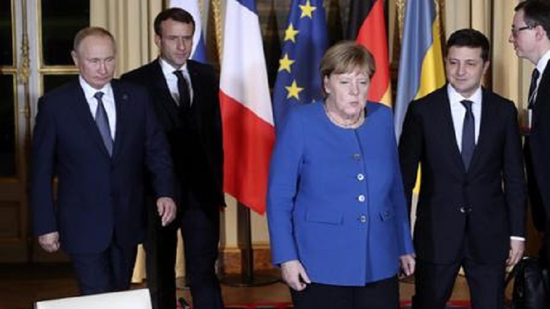 PARIGI (Pars Today Italian) – Il presidente russo Vladimir Putin e quello ucraino Volodomir Zelensky siedono per la prima volta allo stesso tavolo a Parigi all'avvio del vertice sull'Ucraina, al quale partecipano insieme al presidente francese Emmanuel Macron e alla cancelliera tedesca Angela Merkel.