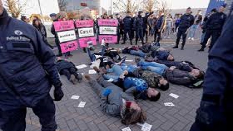 Centocinquanta persone in stato di fermo a Bruxelles, al salone dell'auto. Sono gli attivisti del gruppo ambientalista Extintion rebellion.