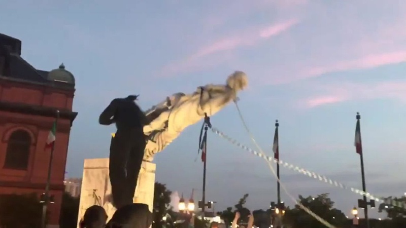 Usa: Baltimora, rovesciata la statua di Cristoforo Colombo