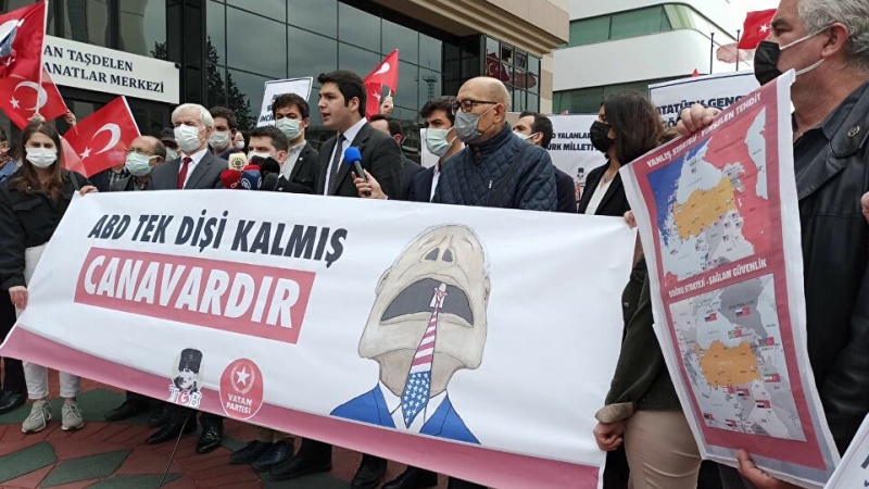 ANKARA - Proteste davanti all’ambasciata amnericana a Istanbul a 24 ore dall’annuncio storico di Joe Biden, ...