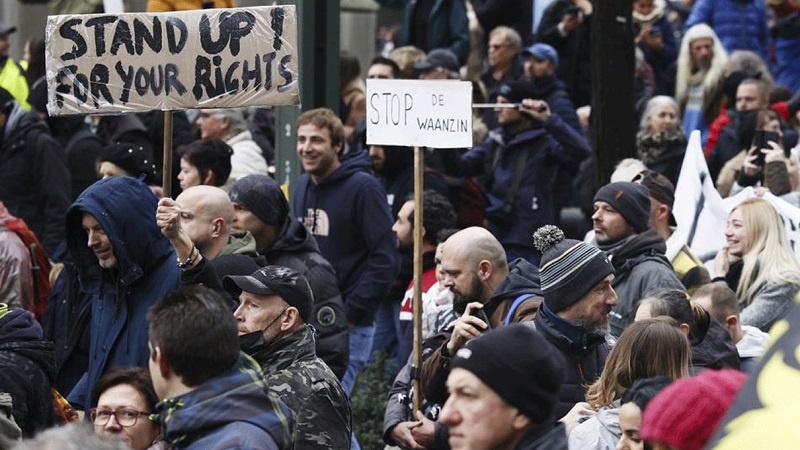 Secondo quanto riferito dalla polizia, 35.000 i manifestanti al corteo partito dalla stazione ferroviaria di Bruxelles Nord. Molti di loro hanno anche protestato contro il consiglio di vaccinarsi e contro qualsiasi mossa per imporre iniezioni obbligatorie. La marcia di protesta si è allineata dietro un enorme striscione che diceva “Together for Freedom”, insieme per la libertà.