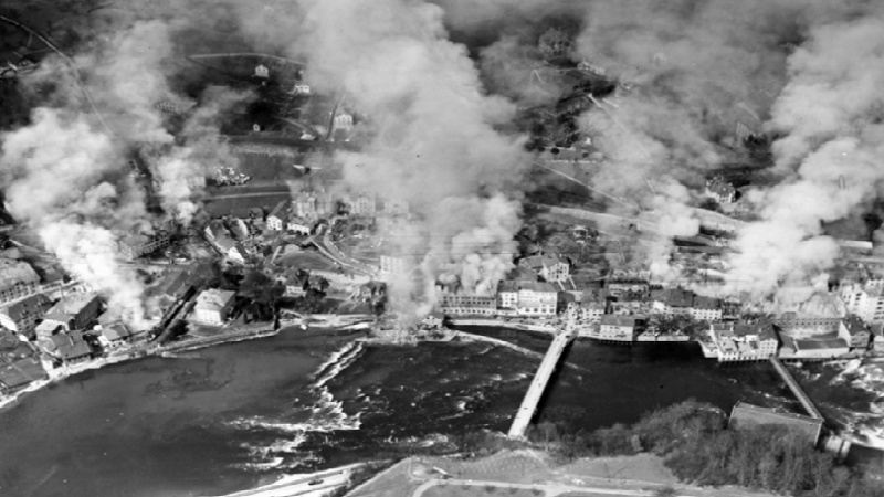 Le bombe rasero al suolo ampie aree della cittadina che si affaccia sul Reno, compresa la zona della stazione e stabilimenti industriali. Era sabato: il cielo era azzurro e soffiava una leggera brezza, quando alle 10:39 risuonò l’allarme aereo.