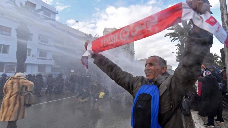 La polizia tunisina ha impiegato gas lacrimogeni e idranti per impedire a dei manifestanti di raggiungere viale Mohamed V, una delle arterie centrali della capitale Tunisi, culla della rivolta del 2011.