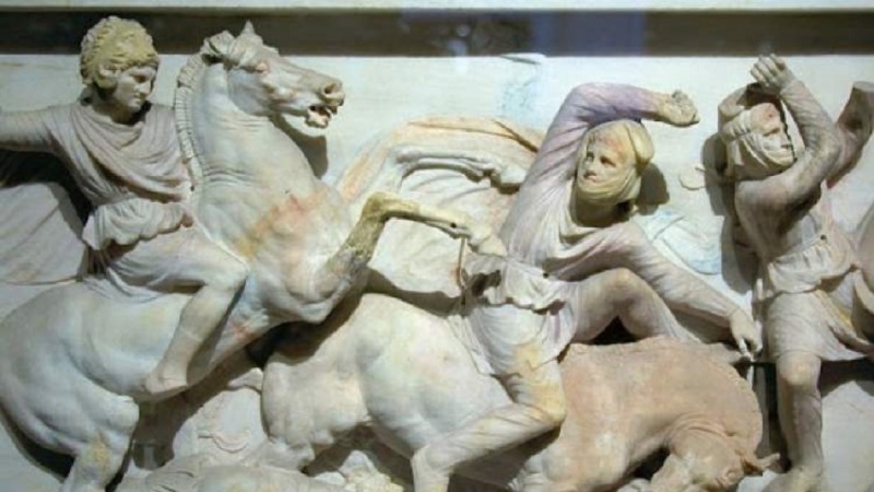 Dopo la vittoria su Dario III a Gaugamela, nel 331 a. C. Alessandro il Macedone si proclamò “Grande Re”. Quindi prese con sé i ricchi tesori di Susa e si diresse verso Persepoli, dove sicuramente si impossessò di enormi ricchezze e di magnifici tesori prima di appiccare il fuoco alla città nel quarto mese della sua permanenza. I nuovi scavi condotti dopo la seconda guerra mondiale hanno infatti portato alla luce documenti che lasciano pensare che prima dell’incendio ci furono nella zona saccheggi su larga scala. Molto probabilmente i saccheggi e l’incendio avvennero con l’assenso di Alessandro, forse come rappresaglia per i templi greci bruciati dai Persiani, o forse perché Persepoli poteva rappresentare un punto di riferimento importante per gli Achemenidi ancora sopravvissuti.