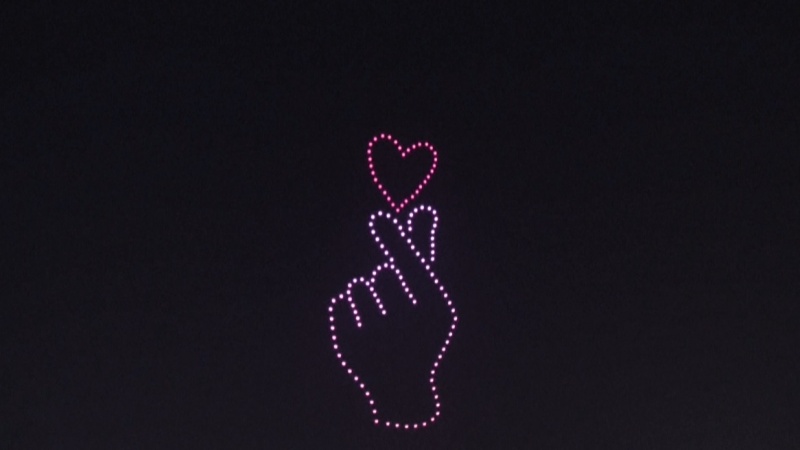 ドローン数百機が韓国ソウル上空を飛行、コロナ対策で人々に希望のメッセージ